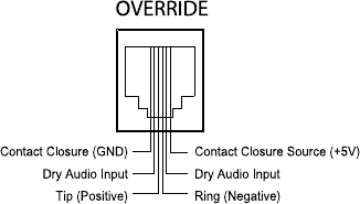 active, the UTI1 goes into Override mode.A contact closure and dry audio source can also be used for the Override